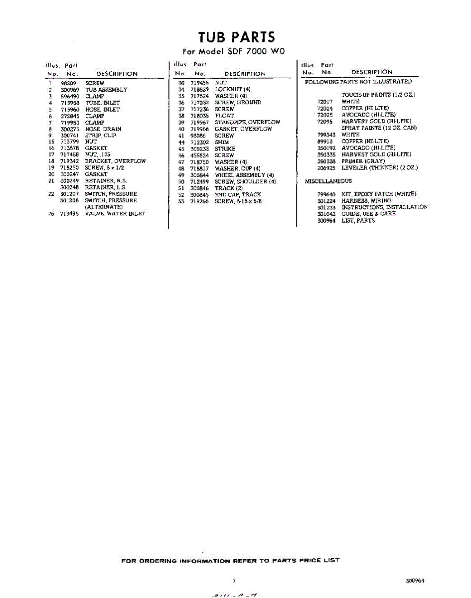 Parts for Whirlpool SDF7000W0: 07 - Lit / Optional Parts