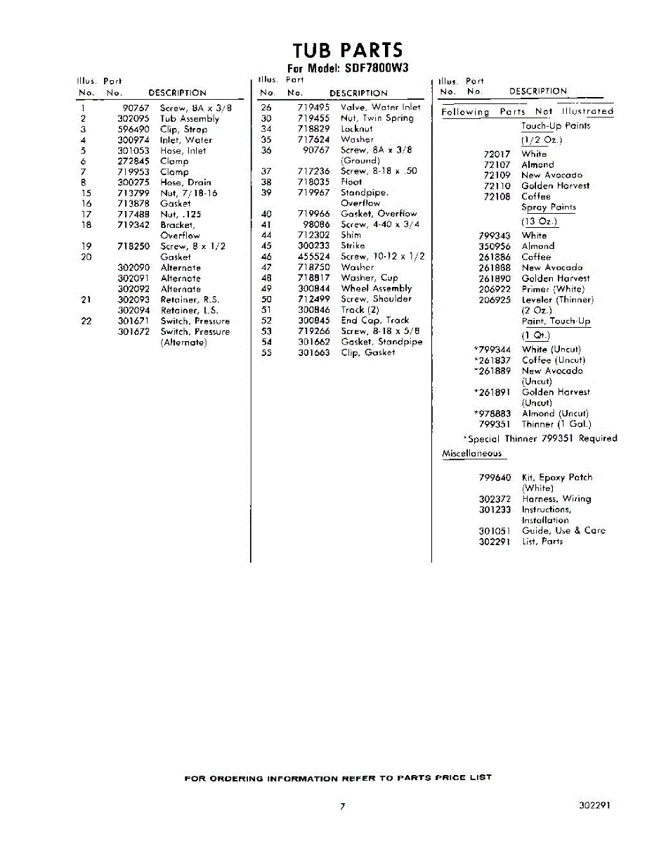 Parts for Whirlpool SDF7800W3: 07 - Lit / Optional Parts