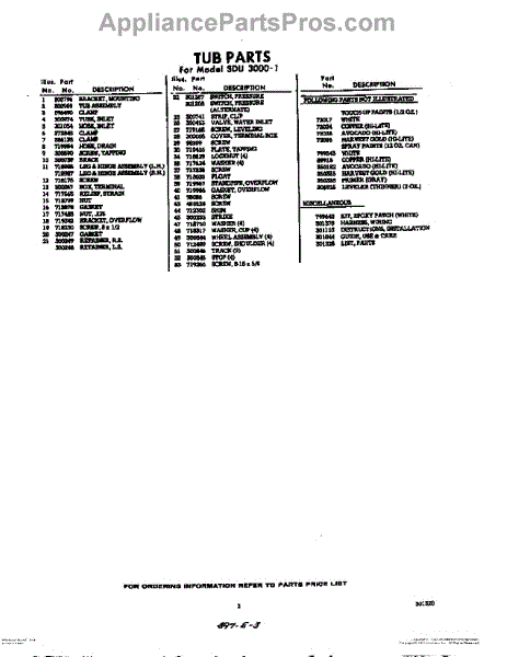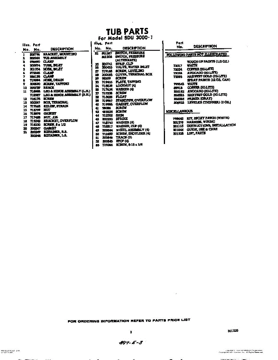 Parts for Whirlpool SDU30001: 03 - Lit / Optional Parts