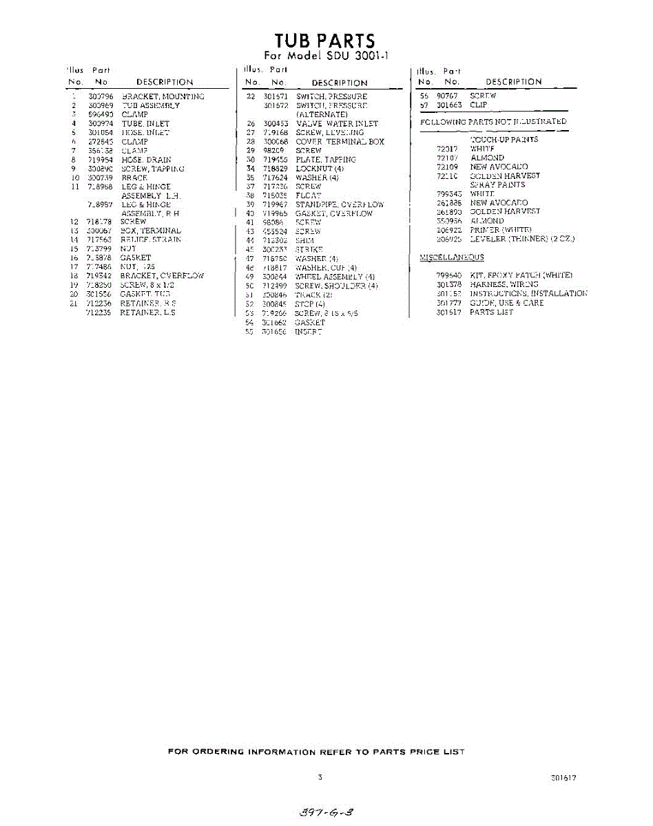 Parts for Whirlpool SDU30011: 03 - Lit / Optional Parts