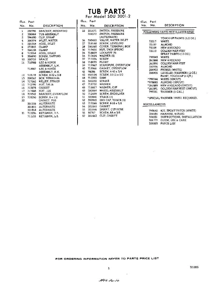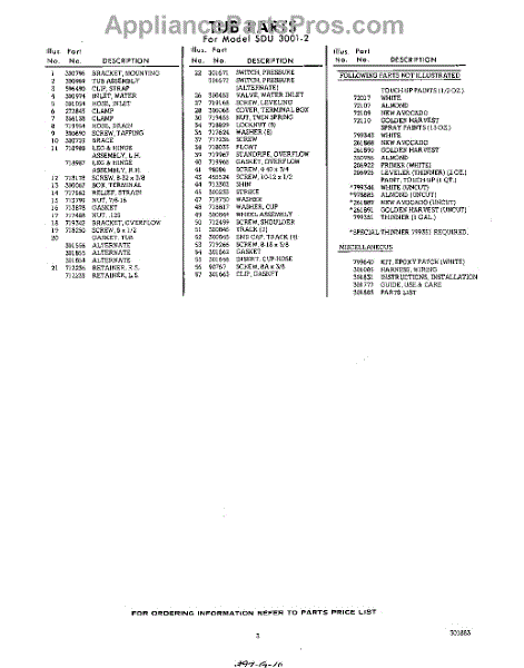 Parts for Whirlpool SDU30012: 03 - Lit / Optional Parts
