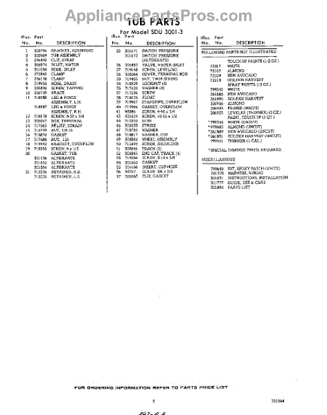 Parts for Whirlpool SDU30013: 03 - Lit / Optional Parts