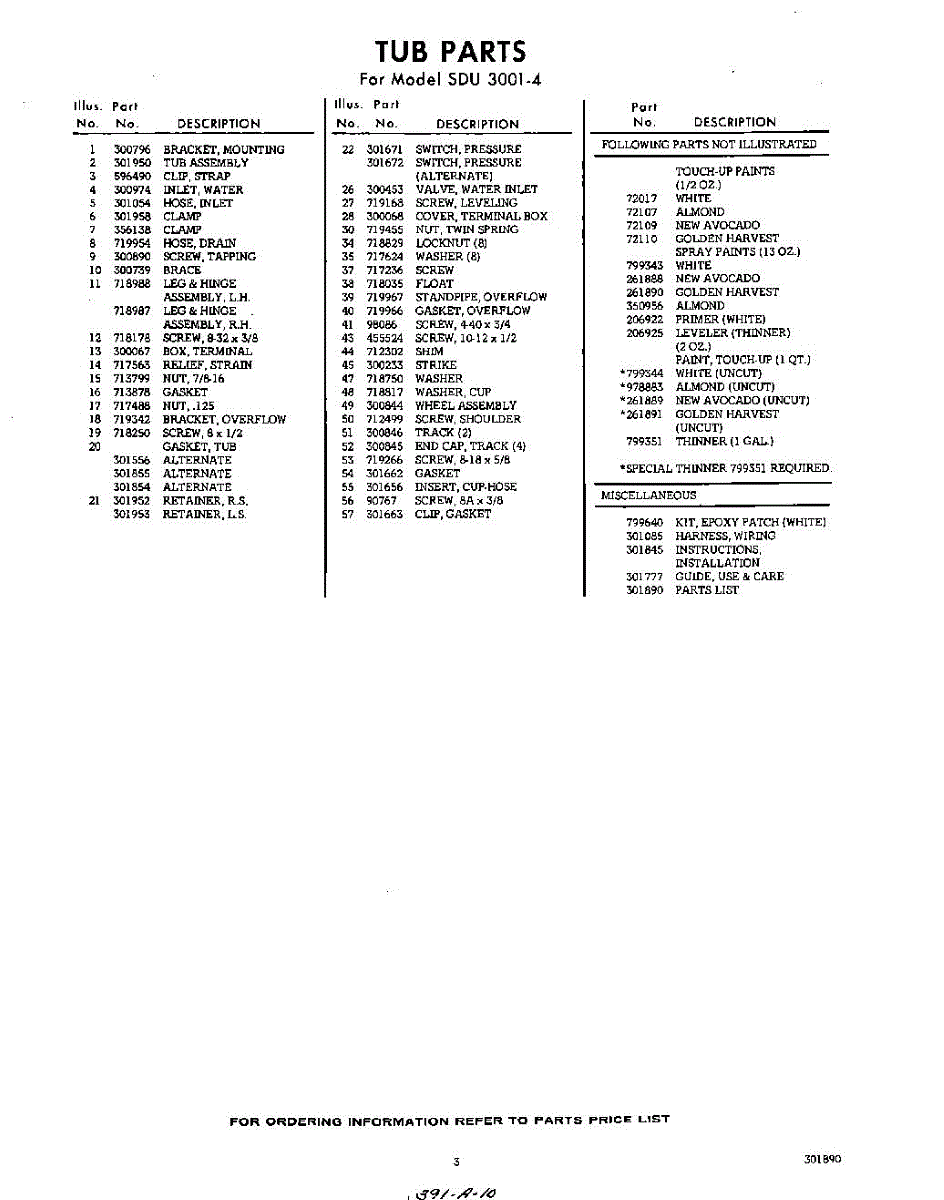 Parts for Whirlpool SDU30014: 03 - Lit / Optional Parts