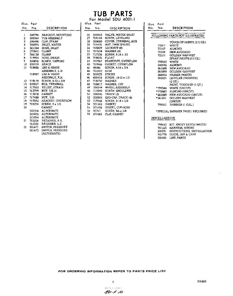 Parts for Whirlpool SDU40011: 03 - Lit / Optional Parts