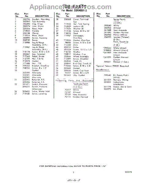 Parts for Whirlpool SDU40012: 03 - Lit / Optional Parts