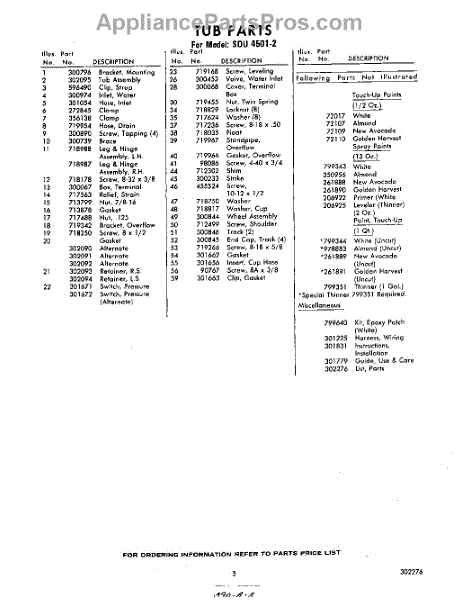 Parts for Whirlpool SDU45012: 03 - Lit / Optional Parts