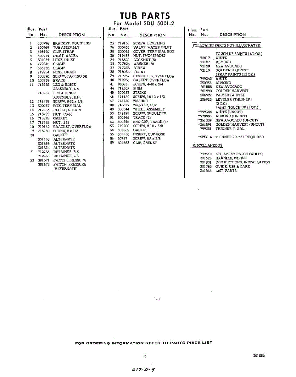 Parts for Whirlpool SDU50012: 03 - Lit / Optional Parts