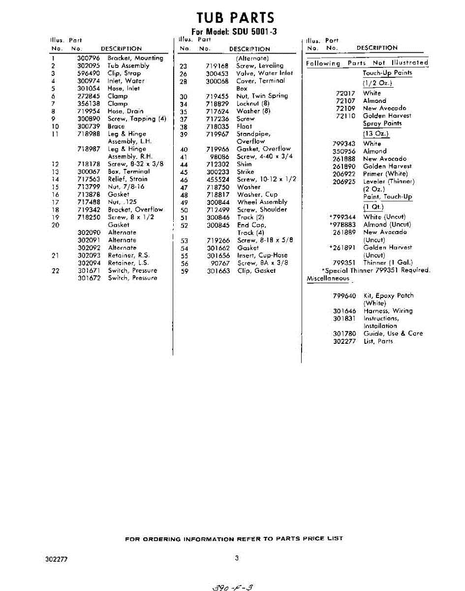 Parts for Whirlpool SDU50013: 03 - Lit / Optional Parts
