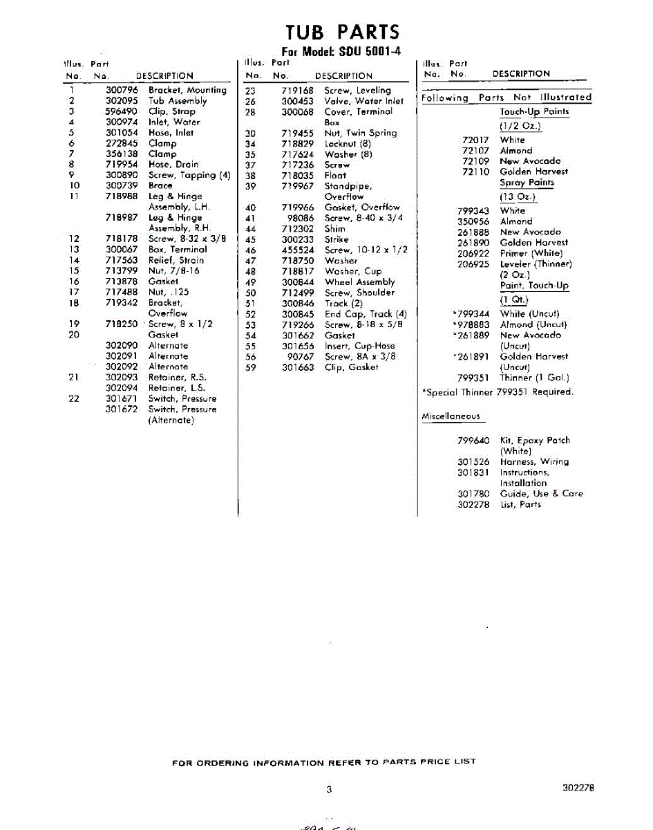 Parts for Whirlpool SDU50014: 03 - Lit / Optional Parts