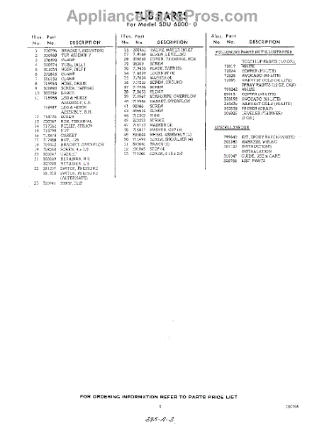 Parts for Whirlpool SDU60000: 03 - Lit / Optional Parts