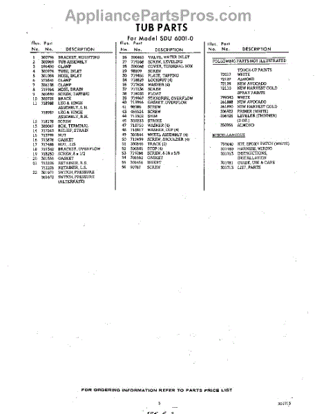 Parts for Whirlpool SDU60010: 03 - Lit / Optional Parts
