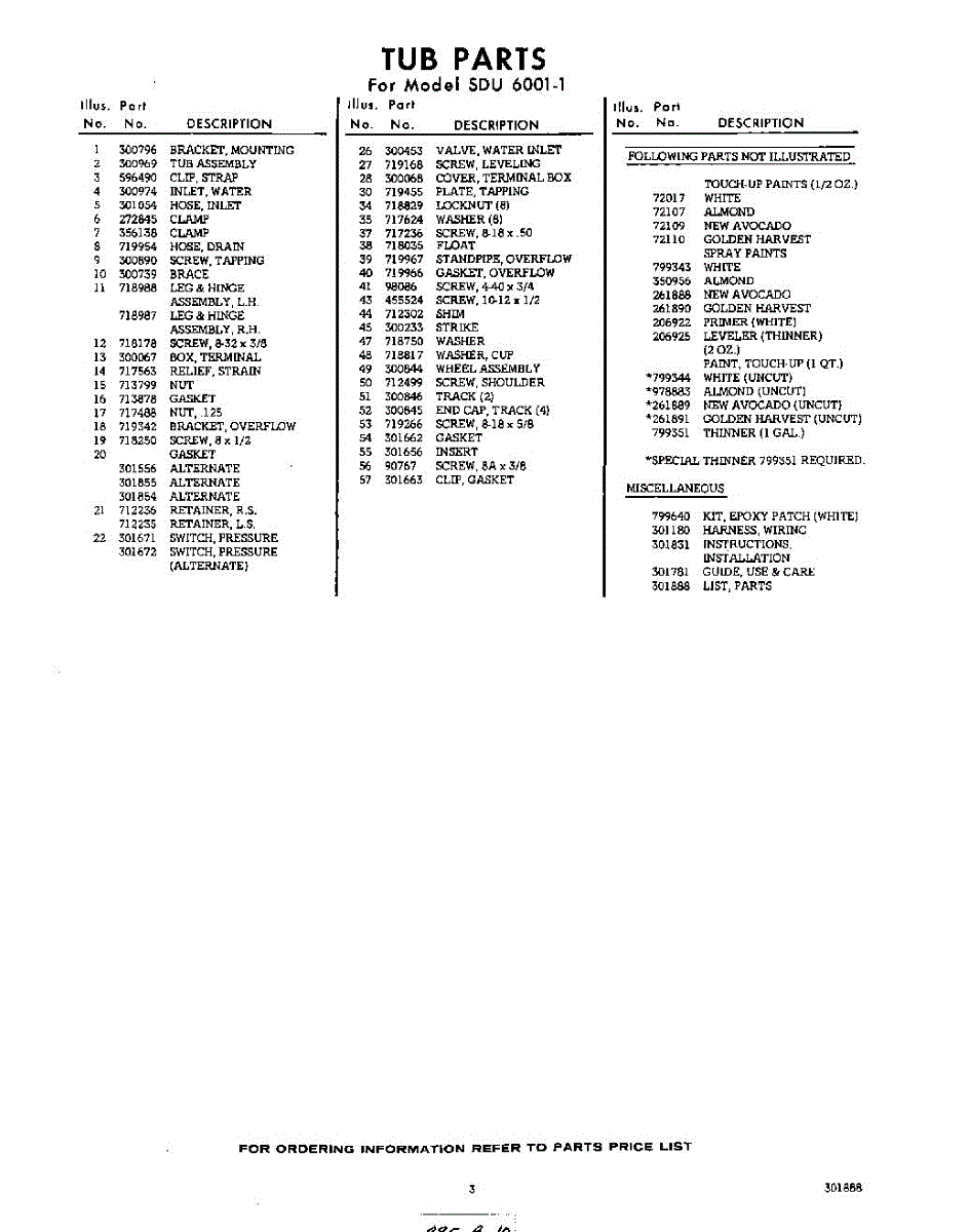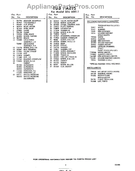 Parts for Whirlpool SDU60011: 03 - Lit / Optional Parts
