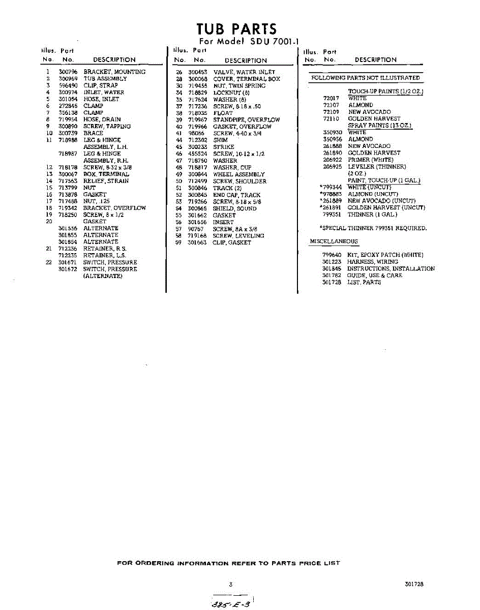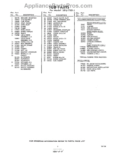 Parts for Whirlpool SDU70011: 03 - Lit / Optional Parts