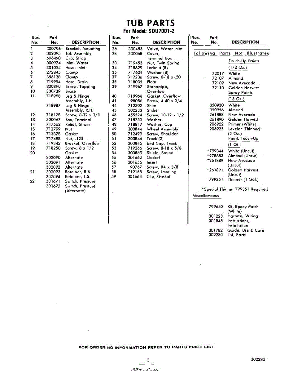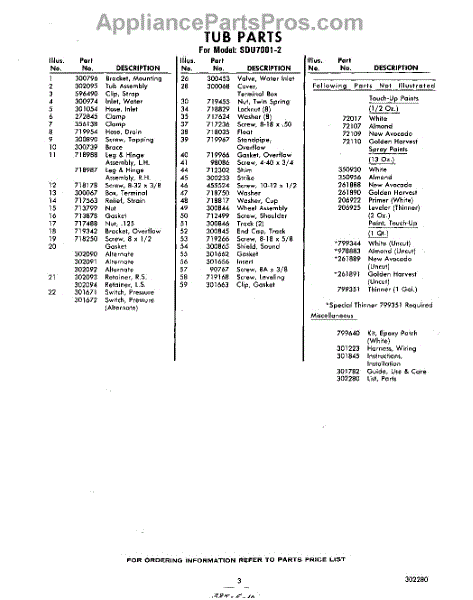 Parts for Whirlpool SDU70012: 03 - Lit / Optional Parts