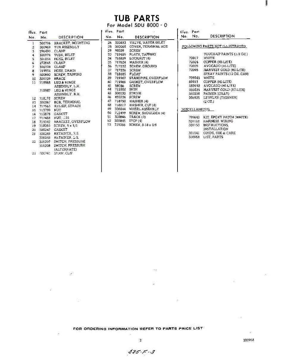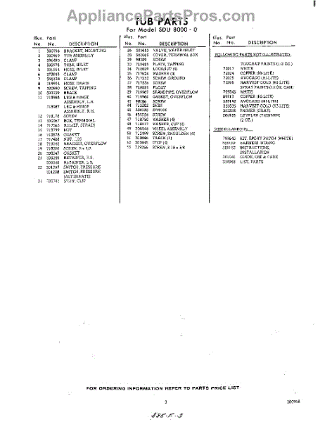 Parts for Whirlpool SDU80000: 03 - Lit / Optional Parts