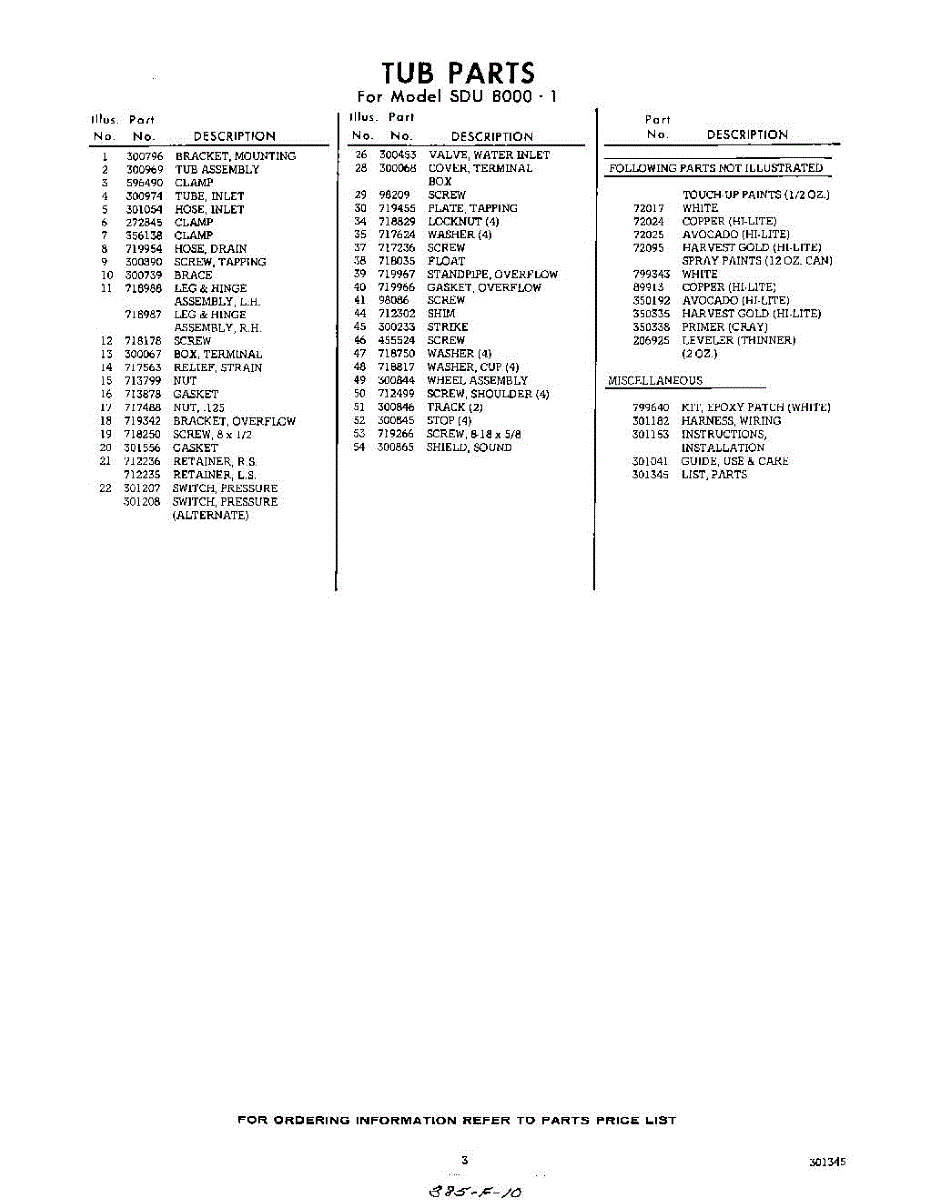 Parts for Whirlpool SDU80001: 03 - Lit / Optional Parts