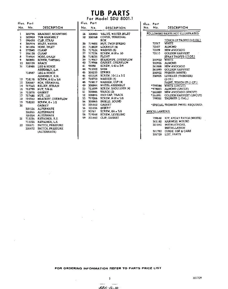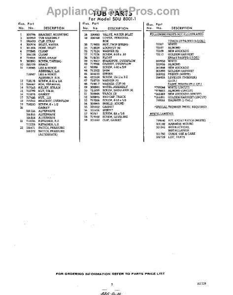 Parts for Whirlpool SDU80011: 03 - Lit / Optional Parts