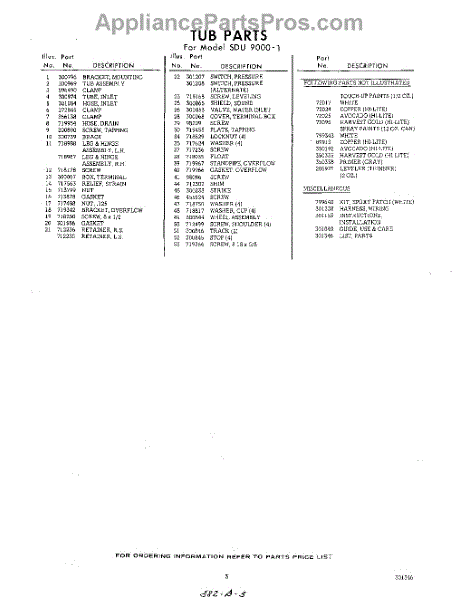 Parts for Whirlpool SDU90001: 03 - Lit / Optional Parts