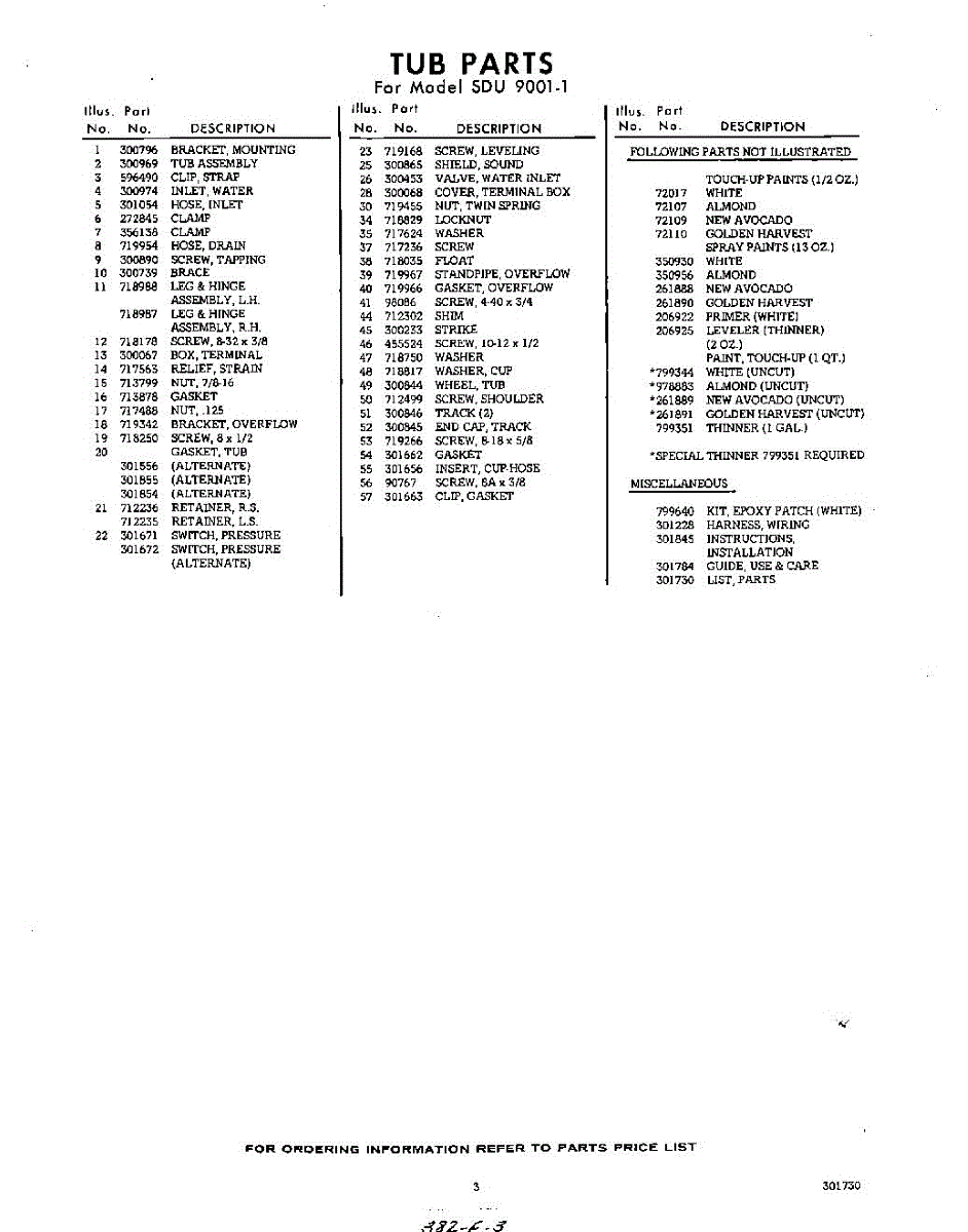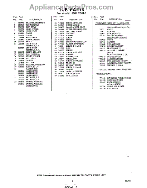 Parts for Whirlpool SDU90011: 03 - Lit / Optional Parts