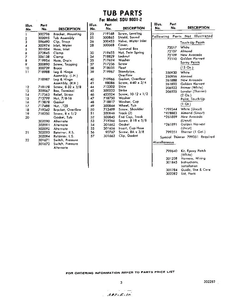 Parts for Whirlpool SDU90012: 03 - Lit / Optional Parts