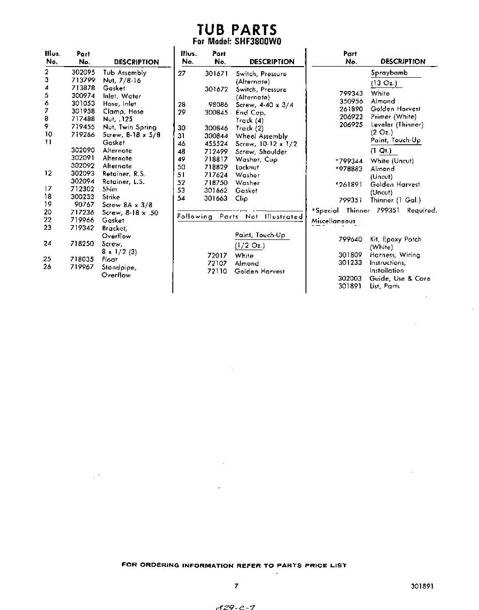 Parts for Whirlpool SHF3800W0: 07 - Lit / Optional Parts