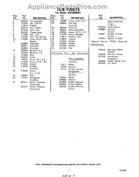 Parts for Whirlpool SHF3800W1: 07 - Lit / Optional Parts