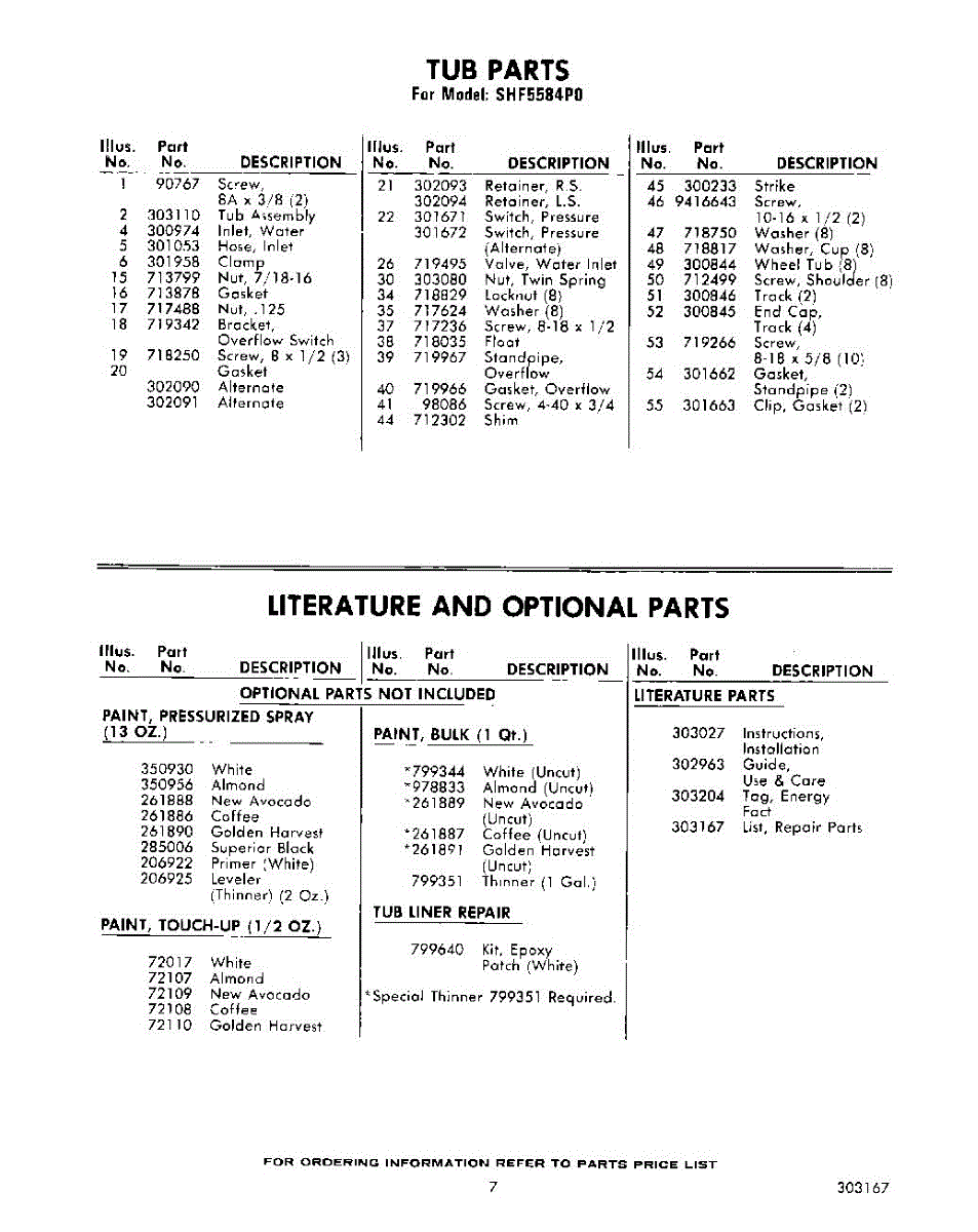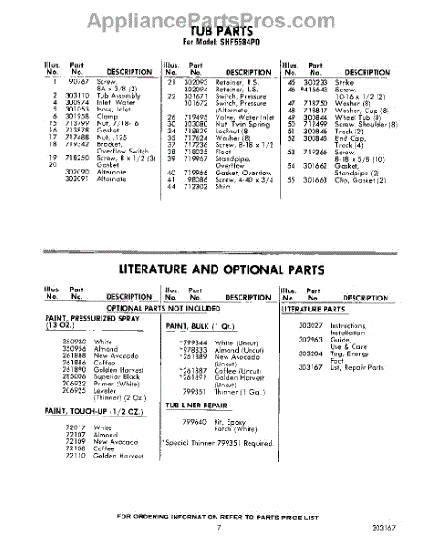 Parts for Whirlpool SHF5584P0: 07 - Lit / Optional Parts