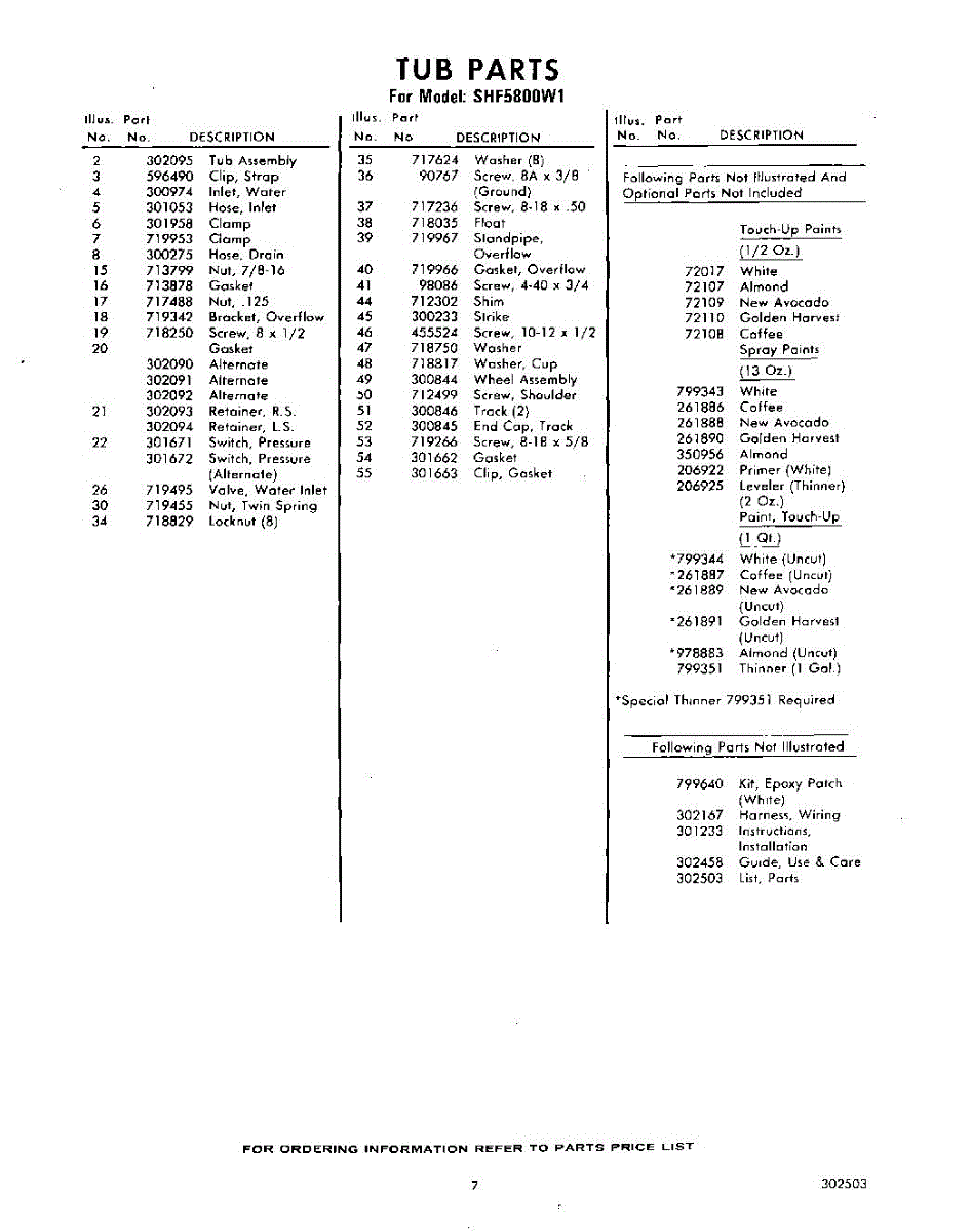 Parts for Whirlpool SHF5800W1: 07 - Lit / Optional Parts