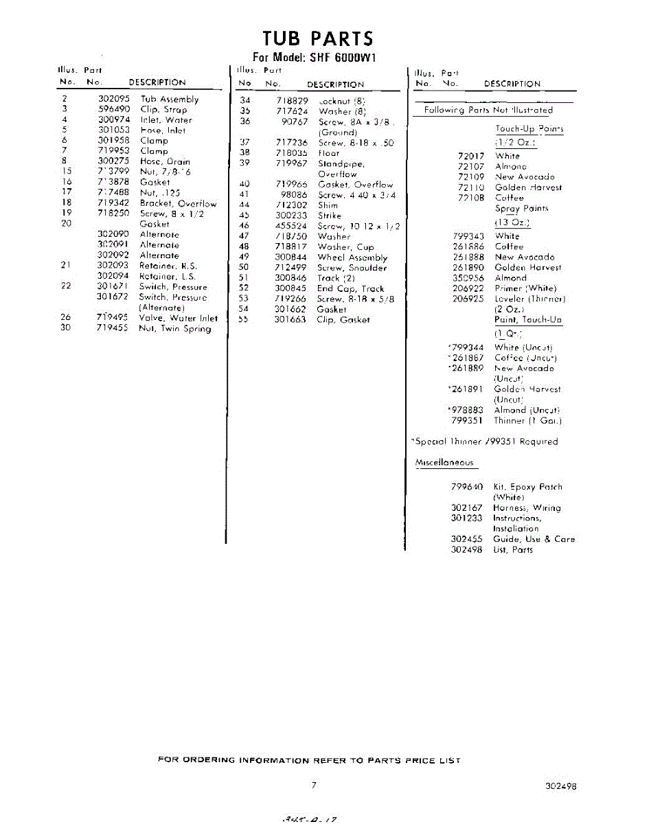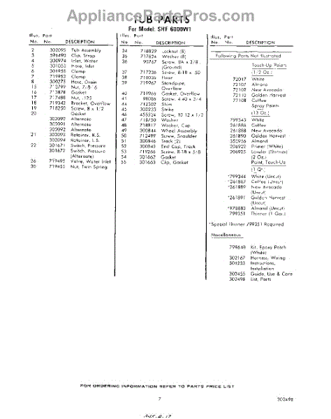 Parts for Whirlpool SHF6000W1: 07 - Lit / Optional Parts
