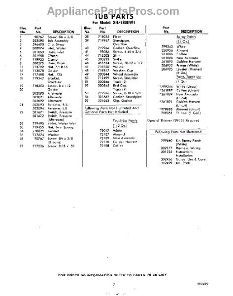 Parts for Whirlpool SHF7800W1: 07 - Lit / Optional Parts