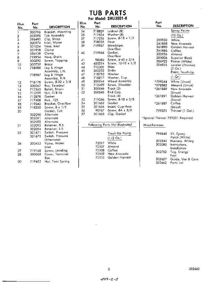 Parts for Whirlpool SHU30010: 03 - Lit / Optional Parts