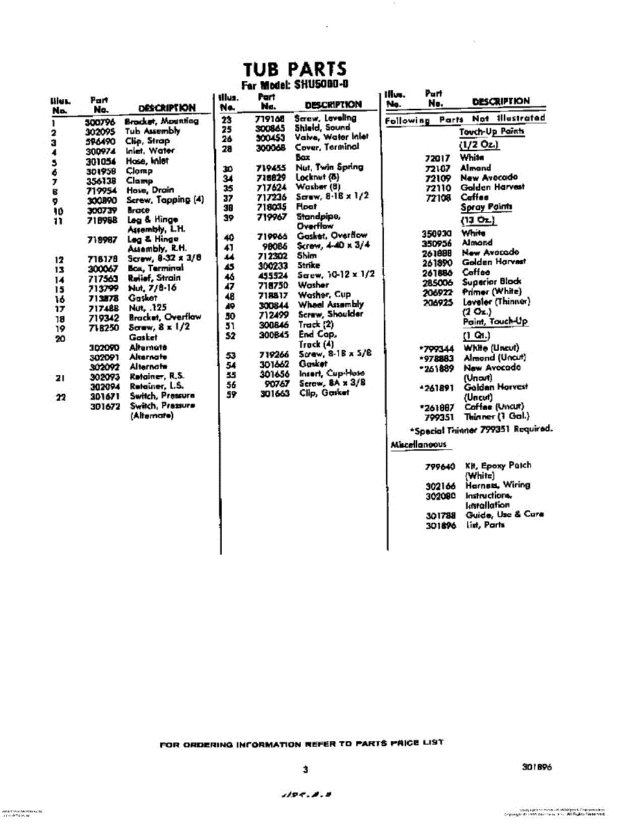 Parts for Whirlpool SHU50000: 03 - Lit / Optional Parts