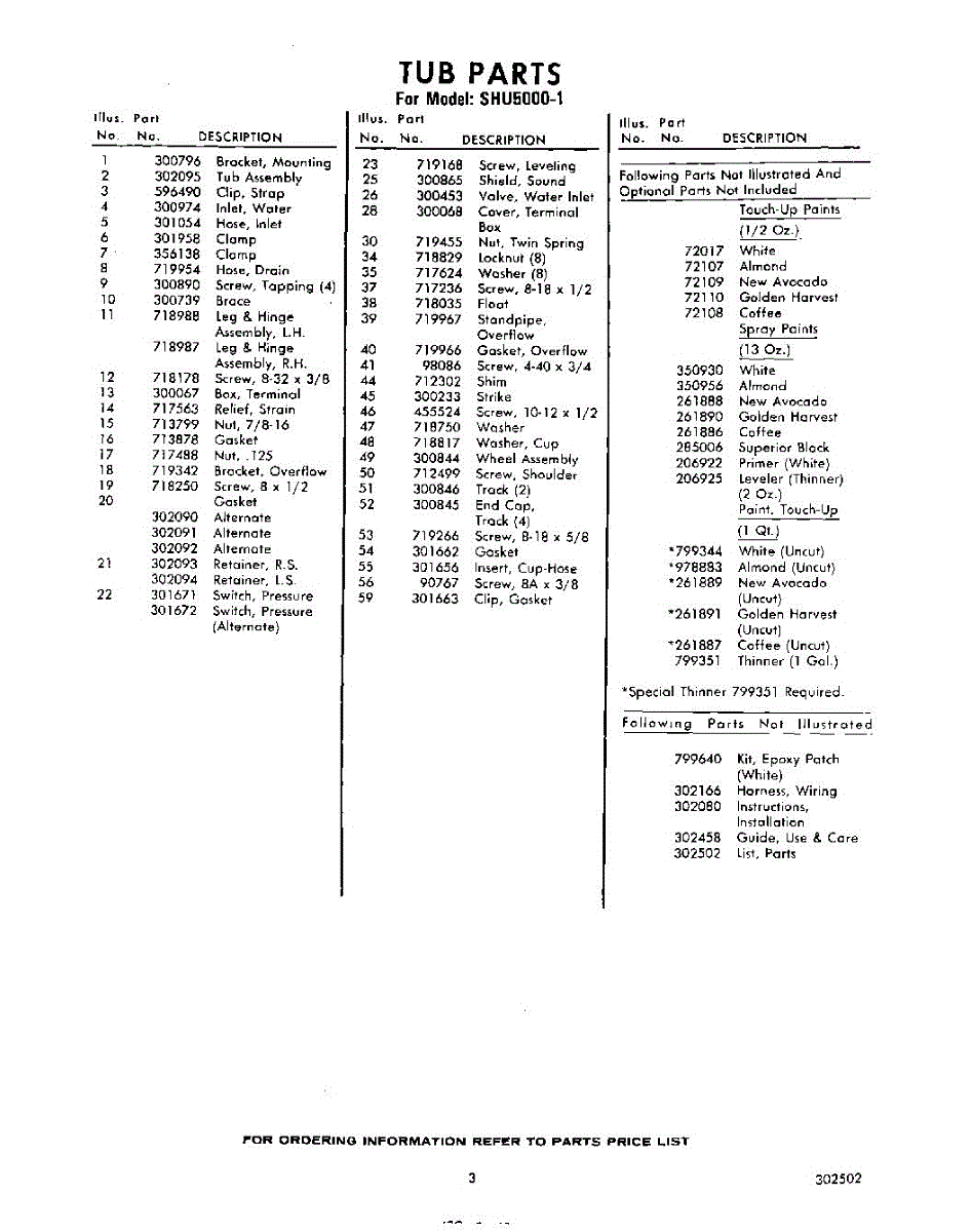 Parts for Whirlpool SHU50001: 03 - Lit / Optional Parts