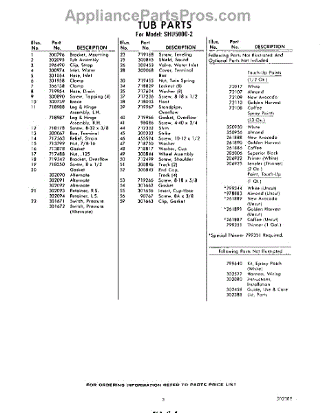 Parts for Whirlpool SHU50002: 03 - Lit / Optional Parts