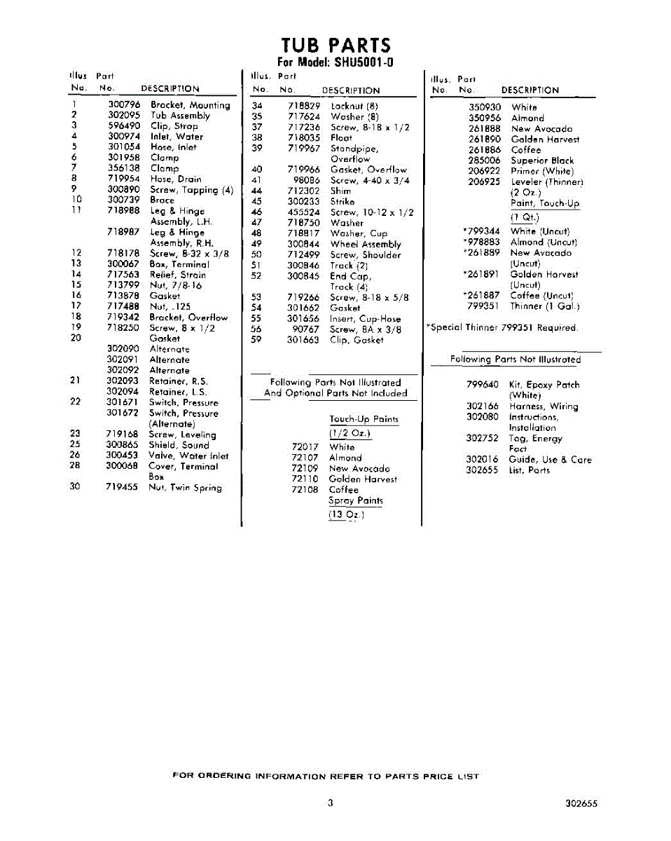 Parts for Whirlpool SHU50010: 03 - Lit / Optional Parts