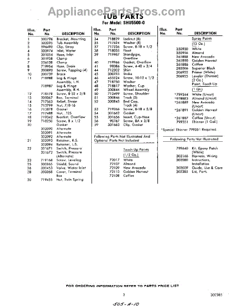 Parts for Whirlpool SHU55000: 03 - Lit / Optional Parts