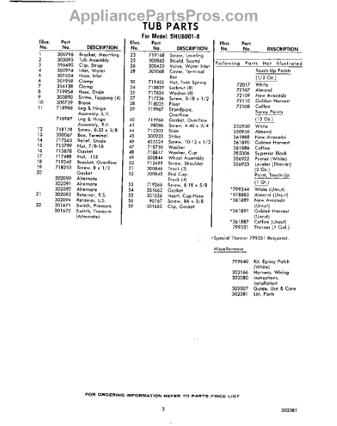 Parts for Whirlpool SHU60010: 03 - Lit / Optional Parts