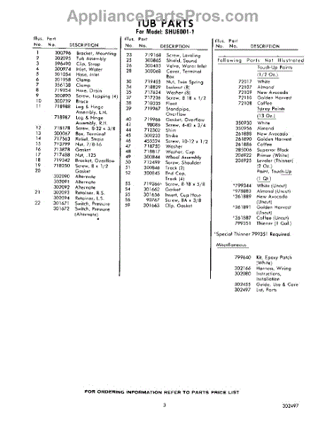 Parts for Whirlpool SHU60011: 03 - Lit / Optional Parts
