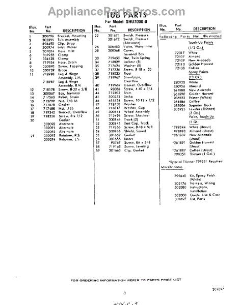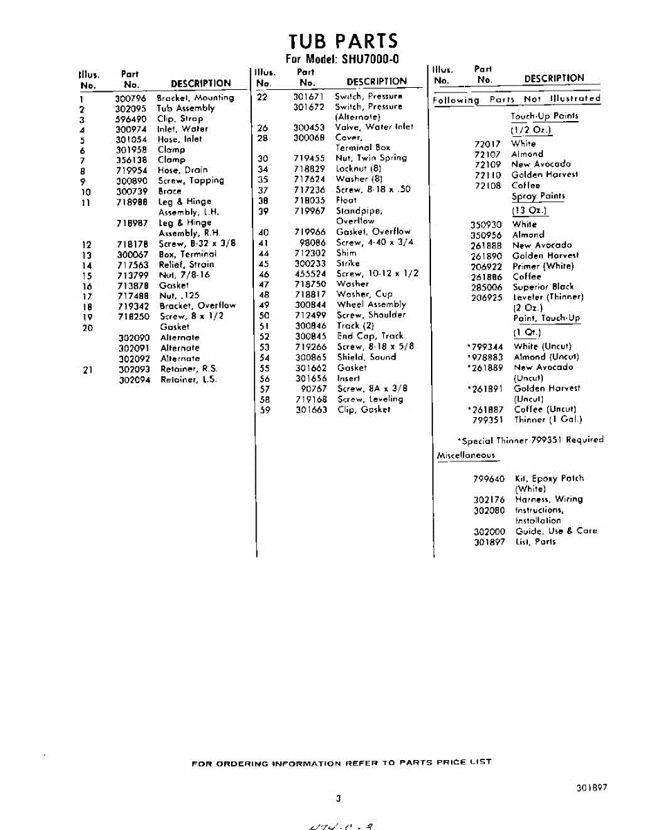 Parts for Whirlpool SHU70000: 03 - Lit / Optional Parts
