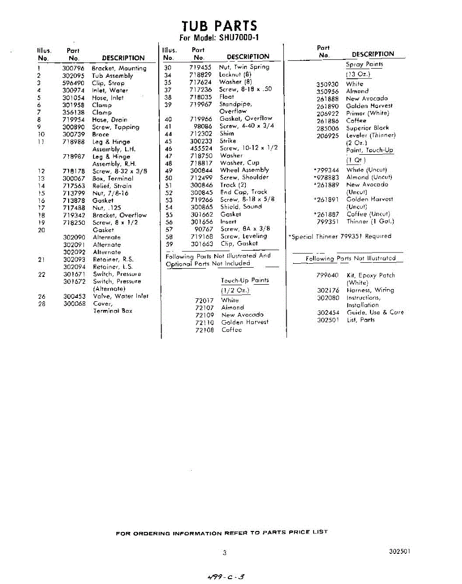 Parts for Whirlpool SHU70001: 03 - Lit / Optional Parts