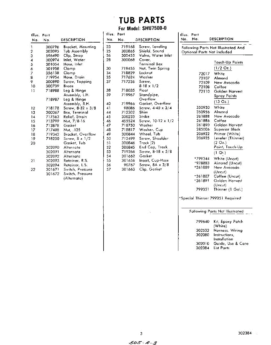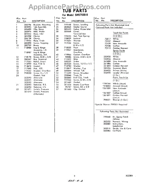 Parts for Whirlpool SHU75000: 03 - Lit / Optional Parts