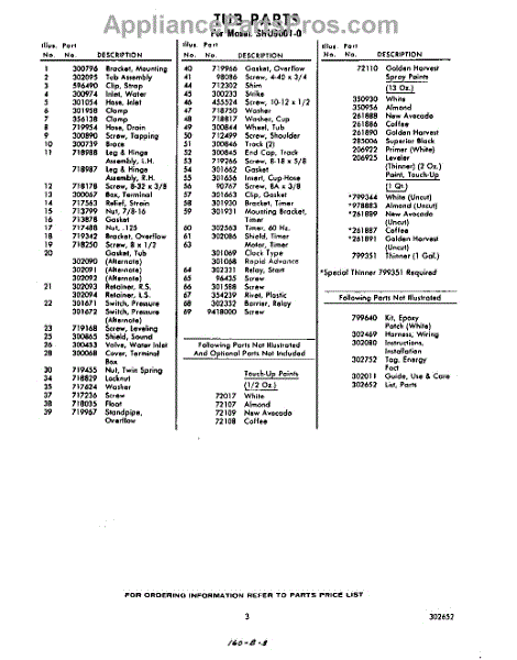 Parts for Whirlpool SHU90010: 03 - Lit / Optional Parts