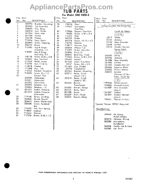 Parts for Whirlpool SHU99000: 03 - Lit / Optional Parts