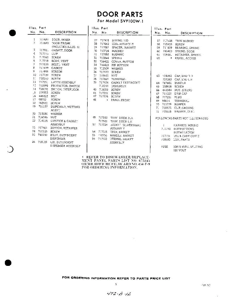 Parts for Whirlpool SVF100W1: 05 - Lit / Optional Parts