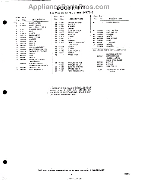 Parts for Whirlpool SVF70W0: 05 - Lit / Optional Parts