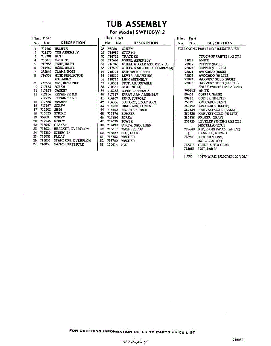 Parts for Whirlpool SWF100W2: 07 - Lit / Optional Parts