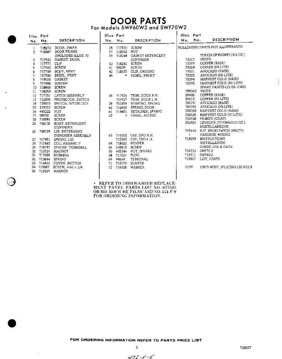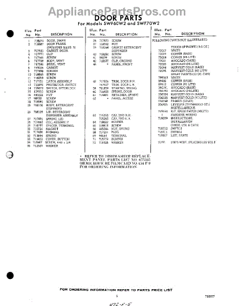 Parts for Whirlpool SWF70W2: 05 - Lit / Optional Parts