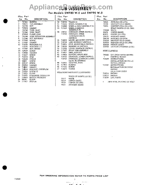 Parts for SWF90W0