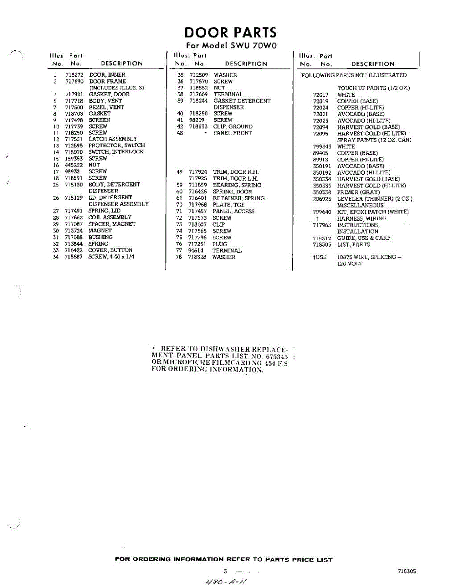 Parts for Whirlpool SWU70W0: 03 - Lit / Optional Parts