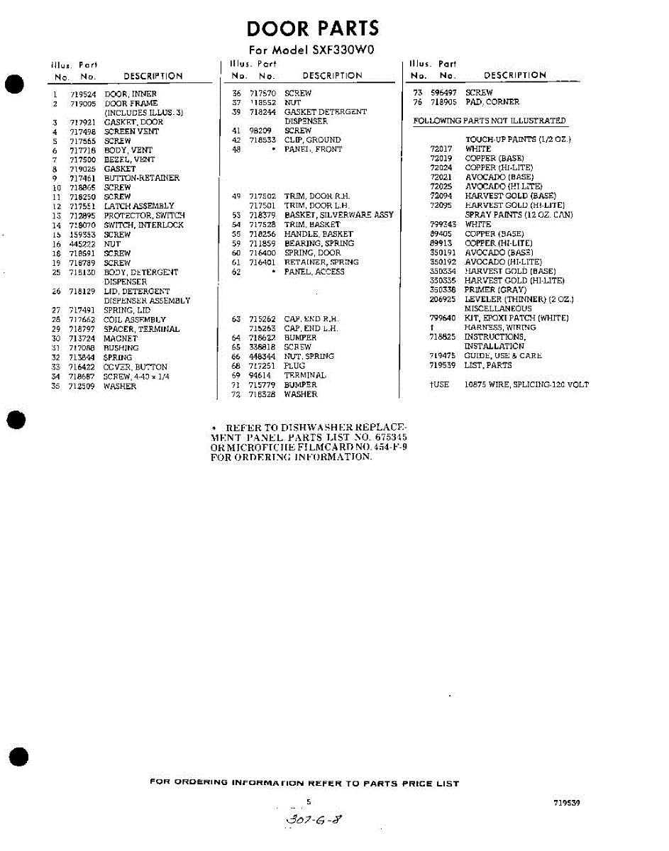 Parts for Whirlpool SXF330W0: 05 - Lit / Optional Parts
